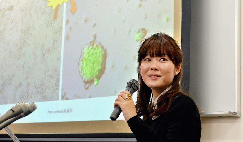 em artigos publicados em janeiro, a dra. Haruko obokata declarou ter sido capaz de criar células-tronco embrionárias a partir de um método inovador. Crédito: asahi shimbun/getty