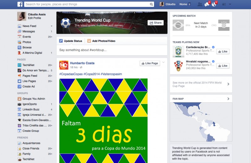 A Copa do Mundo é um dos eventos esportivos mais acompanhados de perto ao redor do Globo. E na era digital, nada como poder seguir, jogo a jogo, todas as novidades através das redes sociais. Para tanto, o Facebook acaba de anunciar a chegada do Trending World Cup, uma ferramenta que reunirá resultados e destaques das últimas partidas, posts e atualizações sobre o evento num espaço criado com exclusividade para tratar do tema.
