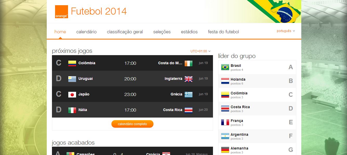 Um dos sites lançados é dedicado em exclusivo ao Mundial 2014 – Orange Futebol 2014 – onde é possível obter várias informações sobre as 32 selecções que se encontram a disputar o Mundial, acompanhar resultados em directo e também as últimas notícias sobre os acontecimentos mais importantes.