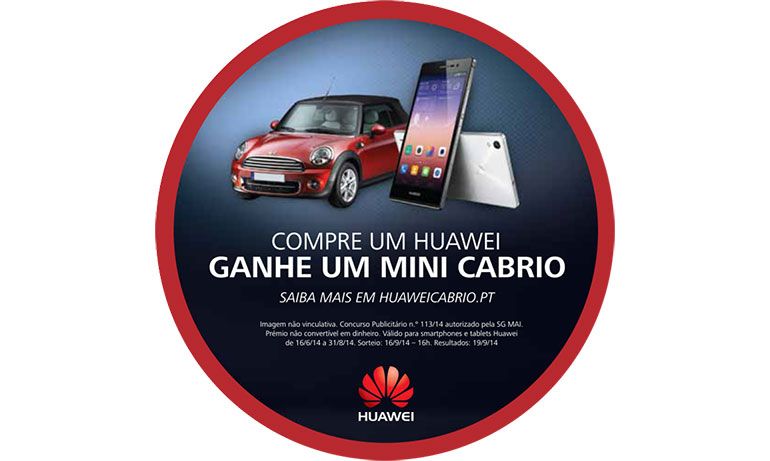 Para além do Mini Cabrio como 1º Prémio, a Huawei irá oferecer o seu mais recente smartphone topo de gama Huawei Ascend P7, do 2ª ao 5º lugar, e o Tablet Huawei MediaPad M1, do 6º ao 10º lugar.