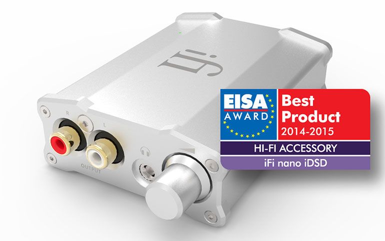 “Os mais belos sons podem certamente vir dos mais pequenos equipamentos, como o iFi nano iDSD demonstra”, disseram a propósito os juízes do prémio EISA deste ano. “Este DAC USB é alimentado através de uma bateria interna de iões de lítio que é carregada através de uma porta USB num PC ou Mac, sendo capaz de oferecer até 10 horas de reprodução com a maioria dos auscultadores ou através das suas saídas RCA. A saída USB simples confere-lhe a compatibilidade com os ficheiros de áudio de mais alta resolução, incluindo 32‐bit/384kHz DXD e DSD256 ‘quad‐speed’ sendo até capaz de reproduzir ficheiros DSD diretamente a partir de um smartphone (iOS/Android) ou iPad usando uma app de terceiros”.