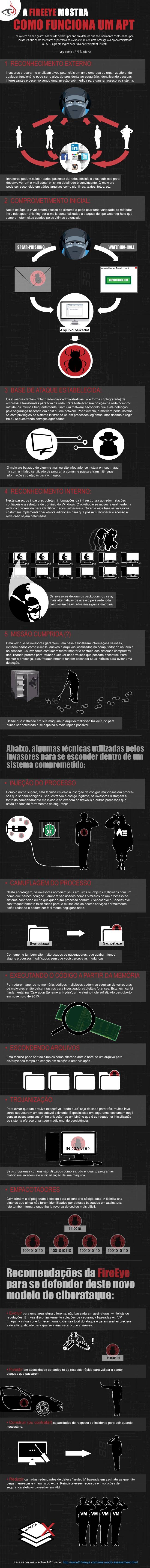 Criado pela empresa de segurança FireEye, este infográfico bastante didático lista as situações mais comuns que facilitam a vida de quem está por trás de um ciberataque bem-sucedido.