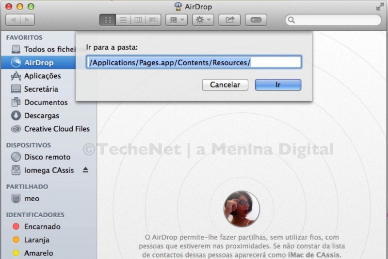 1º A partir de qualquer janela do Finder, pressione Ctrl + Shift + G para abrir a ferramenta de busca. Em seguida, cole o seguinte caminho de arquivo: /Applications/Pages.app/Contents/Resources/