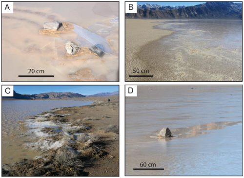 De acordo com dissertação publicada no periódico PLOS ONE, cacos de gelo parecidos com os estilhaços de uma vidraça carregam as pedras (do mineral dolomita) pelo terreno conforme sopra um vento leve, fazendo com que elas “velejem” na lama. Normalmente seco, o fundo do lago pode acumular água proveniente de ocasionais chuvas e nevascas, explica o autor líder do estudo Richard Norris, paleobiólogo do Instituto Scripps de Oceanografia em San Diego (Califórnia), formando “uma poça considerável”.