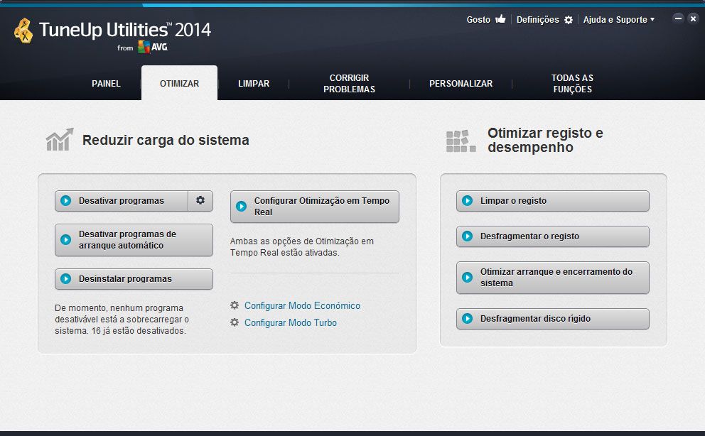 Se o usuário pensa que pode vir a precisar de algum destes programas em algum momento, não há problema nenhum, basta usar a função de “Desactivar programas” encontrada na opção “Otimizar”. Os aplicativos continuarão instalados no computador, mas deixarão de consumir memória, tempo de processador e de mostrar irritantes janelas de comentários. Quando o usuário precisar dos programas novamente, TuneUp Utilities ativará tudo instantaneamente.