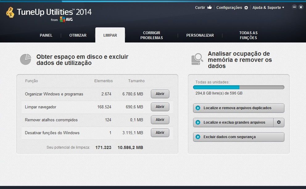 Para conseguir o resultado desejado, é imprescindível desinstalar todos os programas e aplicativos que não se necessite. É possível fazê-lo no Painel de Controle e revisando a lista de programas um por um. No entanto, pela opção “Otimizar” do TuneUp Utilities 2014 o usuário poderá ver quais programas não está utilizando há mais de seis meses, um ano, ou inclusive, organizá-los por tamanho para eliminar os que mais ocupam espaço de forma rápida e fácil.