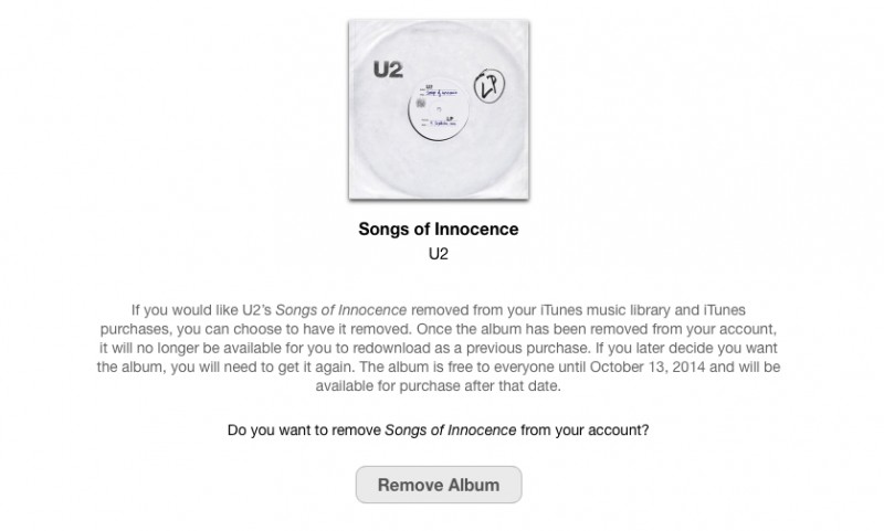 Com isso, a empresa viu-se “obrigada” a criar uma ferramenta que permitisse aos clientes insatisfeitos retirar as músicas dos seus gadgets com facilidade. “Alguns clientes pediram para apagar o disco, por isso foi criada a página itunes.com/soi-remove“, explicou Adam Howorth, porta-voz da empresa.