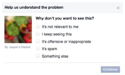 Com a novidade, o Facebook questiona os utilizadores sobre quais motivos os teriam levado a omitir o anúncio em questão. De acordo com Max Eulenstein, “se alguém não quer ver o anúncio porque é ofensivo, por exemplo, provavelmente não será bom para outras pessoas também”, explica o product manager da rede social.