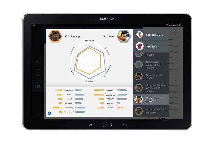 A KICK é a primeira aplicação de futebol compatível com Smart TVs utilizando a tecnologia de ecrã múltiplo. Os adeptos podem aceder e sobrepor estatísticas e informação sobre o jogador do seu tablet ou smartphone Samsung para o ecrã do televisor, facultando toda uma nova forma de ver futebol.