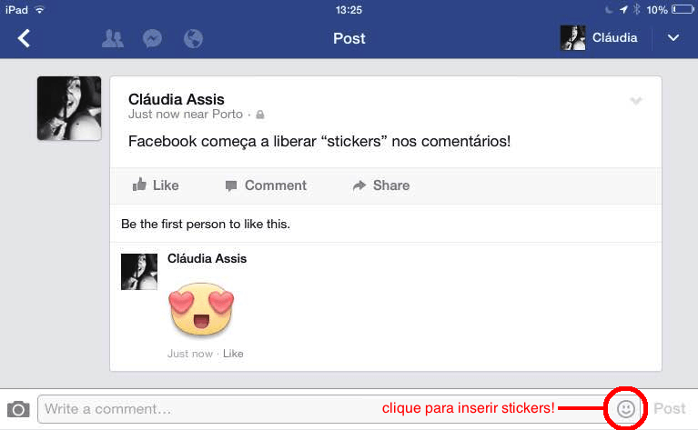 Conforme explica Bob Baldwin, engenheiro do Facebook, a partir de agora será possível acrescentar stickers – figurinhas inspiradas nos tradicionais emoticons – nos comentários feitos em publicações de grupos, amigos e eventos.
