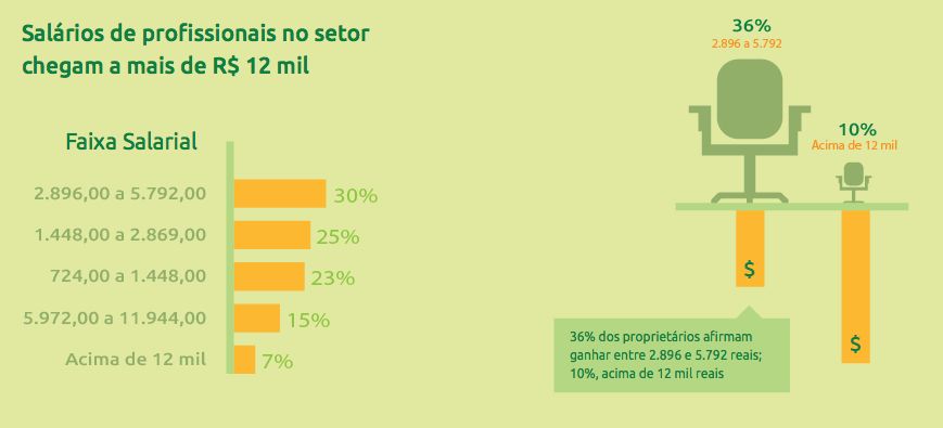 No que diz respeito aos valores salariais praticados neste nicho de mercado, embora a maioria dos profissionais (quase 30% deles) ganhem entre R$ 2.896 e 5.792, os profissionais do setor podem alcançar salários de que ultrapassam os R$ 12 mil (cerca de € 4.000).