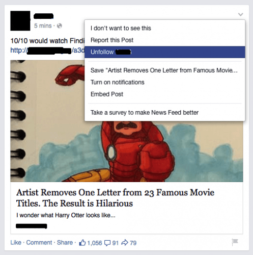 Ou seja, ao visualizar uma atualização indesejada, será necessário apenas acionar o menu no canto superior à direita e escondê-la (“I don’t want to see this”/”Eu não quero ver isto”). Em seguida, surgirá a opção de ver menos posts do utilizador ou página responsável pelo post “indesejado”. E neste caso, o utilizador também recebe a opção para deixar de seguir (“unfollow”) o autor da postagem.