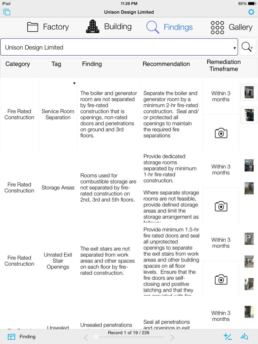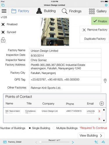 A desenvolvedora de software Anvil Dataworks trabalhou com a Hughes para criar uma solução sob medida que permitiu aos inspetores coletar dados e fotos – os transmitindo a escritórios espalhados pelo mundo – e gerar relatórios a partir de um único aplicativo móvel. Os relatórios de inspeção foram usados para alertar os donos das fábricas quanto a deficiências em segurança e em proteção contra incêndios encontradas nos edifícios. Além disso, foram acrescentados planos de ações corretivas. A solução foi criada usando três plataformas de software – FileMaker Pro 13, FileMaker Server 13 e FileMaker Go para iPad.