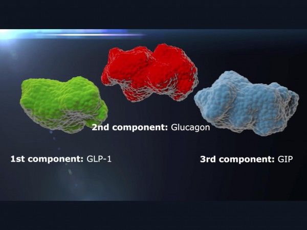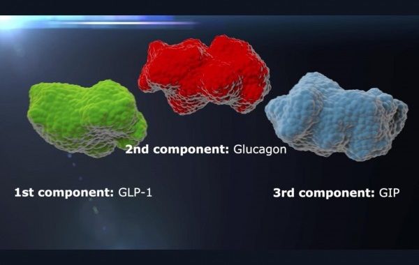 Para atacar a obesidade e a diabetes, os pesquisadores descobriram que não bastava ampliar individualmente a produção desses três hormônios, pois que isto levou a pouca perda de peso (apenas 2,7 kg em testes com humanos, aproximadamente) e a alguns efeitos colaterais adversos. Assim, buscou-se sintetizar uma única proteína composta pelas estruturas de glucagon, GLP-1 e GIP e, após anos de experimentos em células e roedores, o grupo chegou a uma droga híbrida capaz de ativar a produção do trio de hormônios, sem afetar outros sistemas hormonais.