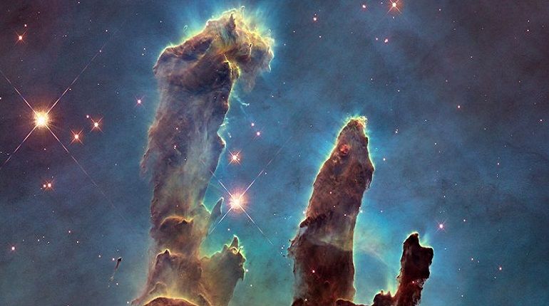 Cabe lembrar, entretanto, que as mesmas estrelas que expulsam o gás das colunas são as que permitem as observações do Hubble, uma vez que sua luz ultravioleta ilumina e dá brilho às nuvens de hidrogênio, oxigênio e enxofre da região.