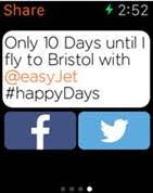 Os passageiros irão também poder comunicar no Twitter e no Facebook em várias alturas do seu percurso directamente a partir do seu relógio, partilhando a contagem decrescente para a sua partida e também o estado do tempo no seu destino.
