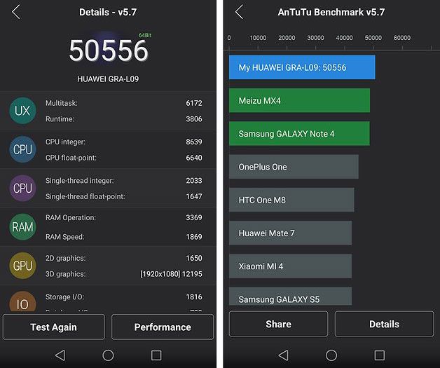 Durante a utilização diária, este terminal não apresentou qualquer falha significativa de performance, correndo todas as aplicações e jogos de forma suave e sem interrupções. Mesmo em jogos que levam o desempenho gráfico para níveis bastante elevados, como por exemplo Modern Combat 5 e Real Racing 3, o P8 não apresentou qualquer dificuldade de processamento.