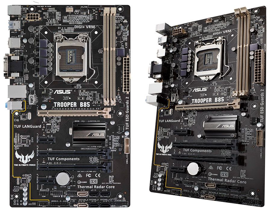 A mais recente motherboard da ASUS, a TUF Trooper B85, conta com o chipset B85 Express desenhada para uma excecional fiabilidade, assegurada por uma garantia de cinco anos.