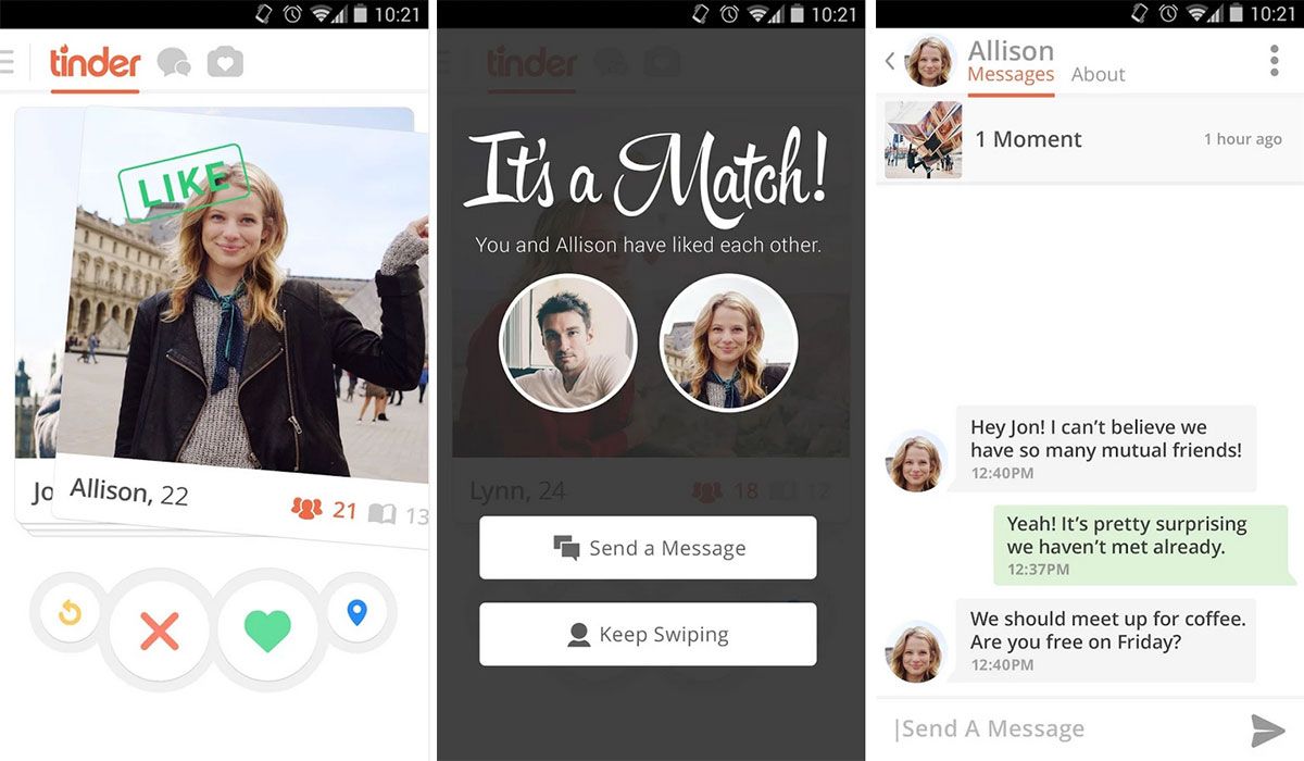 O Tinder descreve brevemente o utilizador, em duas frases e deixa que os ‘likes’ do Facebook falem por si. Digamos que o Tinder funciona como a velha máxima ”se não gostas à primeira vista, não percas tempo”.