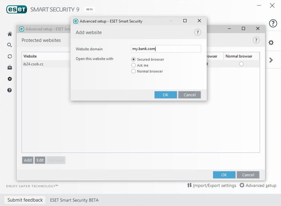 A grande novidade do ESET Smart Security 9 é a proteção de transações bancárias e pagamentos eletrónicos (Banking & Payment Protection) que oferece aos utilizadores um ambiente seguro para transações online ao detetar automaticamente quando estes estão a visitar um website de home banking ou de pagamentos online.