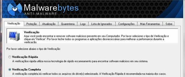 Terminado esse download, clique sobre a aba “Verificação”. Dentre as opções disponíveis, escolha a “Verificação Completa”. Essa alternativa verifica todos os arquivos dos drives selecionados, sendo recomendado para aqueles que não têm certeza da situação de suas máquinas.