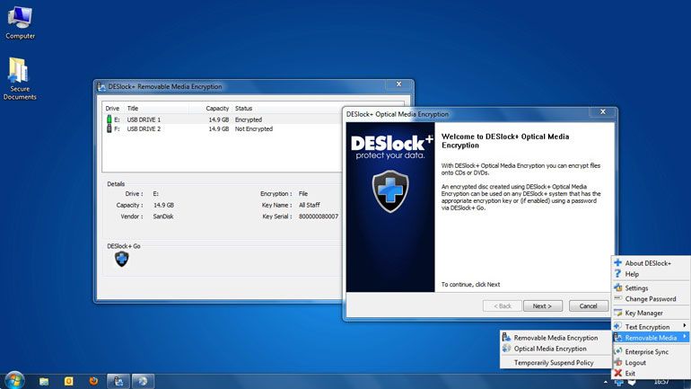 O DESlock+ é uma ferramenta poderosa com um sistema patenteado de partilha de chaves que oferece funcionalidades avançadas de encriptação. Pode ser gerido remotamente através de um browser, disponibiliza uma versão mobile para iOS e ainda o cliente DESlock+ Go que garante a segurança dos dados em estações de trabalho que não têm o DESlock+ instalado.