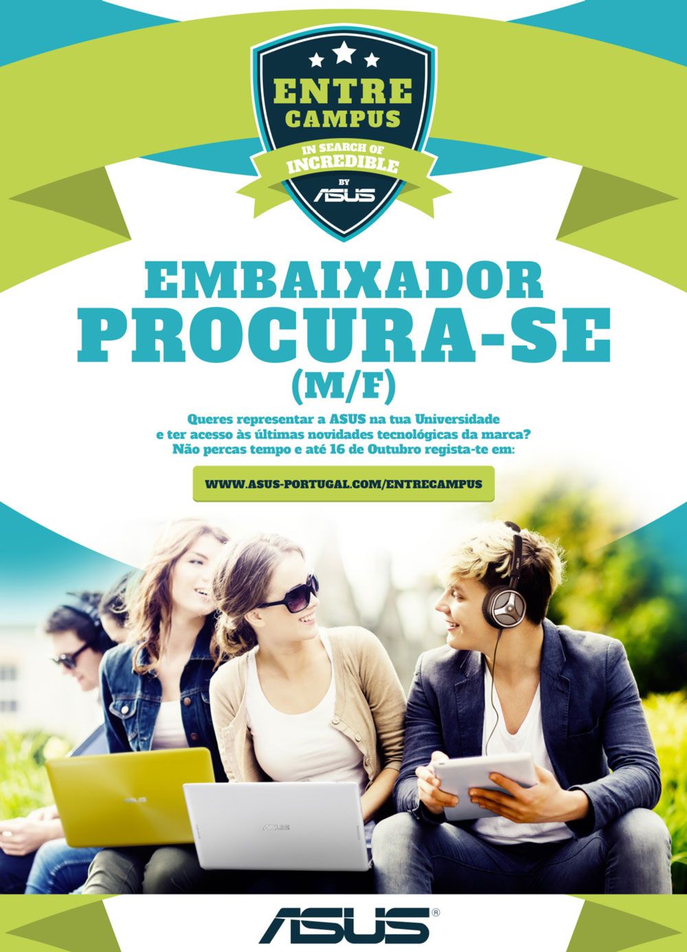 EntrecampusOs universitários que forem selecionados como embaixadores da ASUS irão receber formação e produtos em primeira mão para experimentar. Os “embaixadores” terão como missão promover a filosofia e valores da marca junto da comunidade do seu respectivo campus, desenvolvendo iniciativas ao longo do ano letivo.