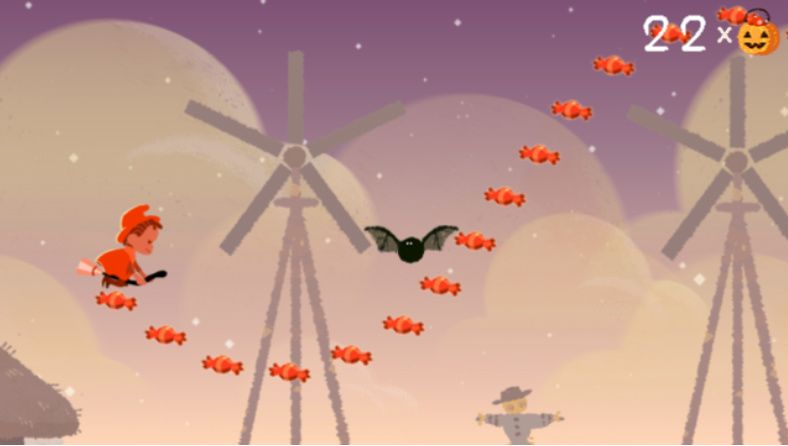 O Doodle – a versão modificada do logotipo do buscador – leva-nos numa recolha de doces. A missão da bruxa em que nos tornamos é apanhar o maior número possível de chupas, rebuçados e tablets de chocolate para que a nossa equipa vença a competição. Antes de jogarmos, temos de escolher uma das quatro simpáticas bruxas, que alinham por outras tantas equipas mundiais: a amarela, a vermelha, a verde ou a azul.