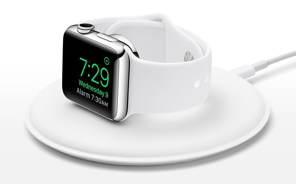 A nova Magnetic Charging Dock permite carregar o Apple Watch através de magnetismo, ou seja dispensa quaisquer ligações. Para alimentar a bateria basta colocar o relógio na doca, quer deitado com o visor para cima e com a pulseira aberta, ou de lado. Quando colocado na posição “de lado” o Apple Watch entra automaticamente em modo Nightstand e transforma-se numa espécie de alarme/despertador, com botões que possibilitam parar ou adiar o alarme.