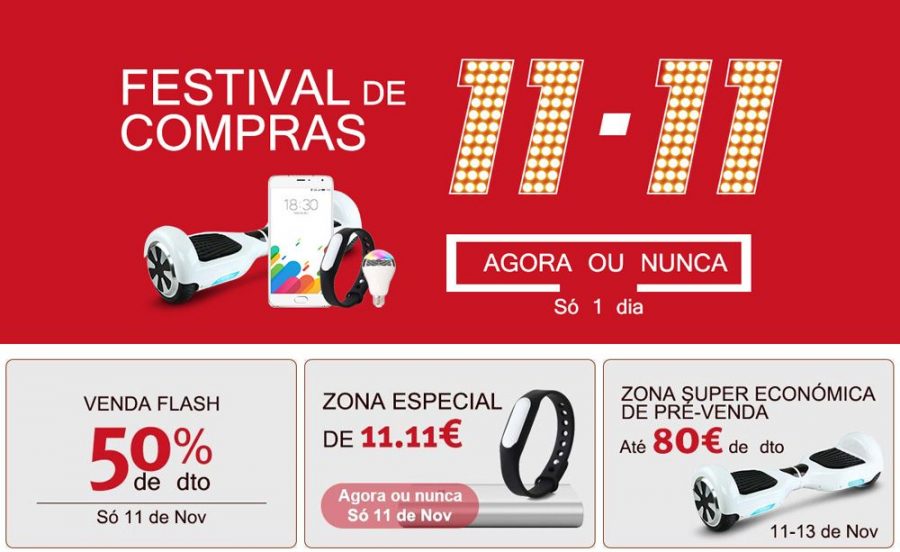 No festival de compras, cujo mote é “Agora ou Nunca”, durante 24 horas alguns produtos terão o seu preço reduzido em mais de 50%. Mas a GeekVida não se fica por aqui, durante o dia de amanhã a “Zona Especial” oferece diversos gadgets pelo preço fixo de 11,11 euros, com auriculares da Meizu e da Xiaomi, por exemplo, a custarem menos de metade do valor.
