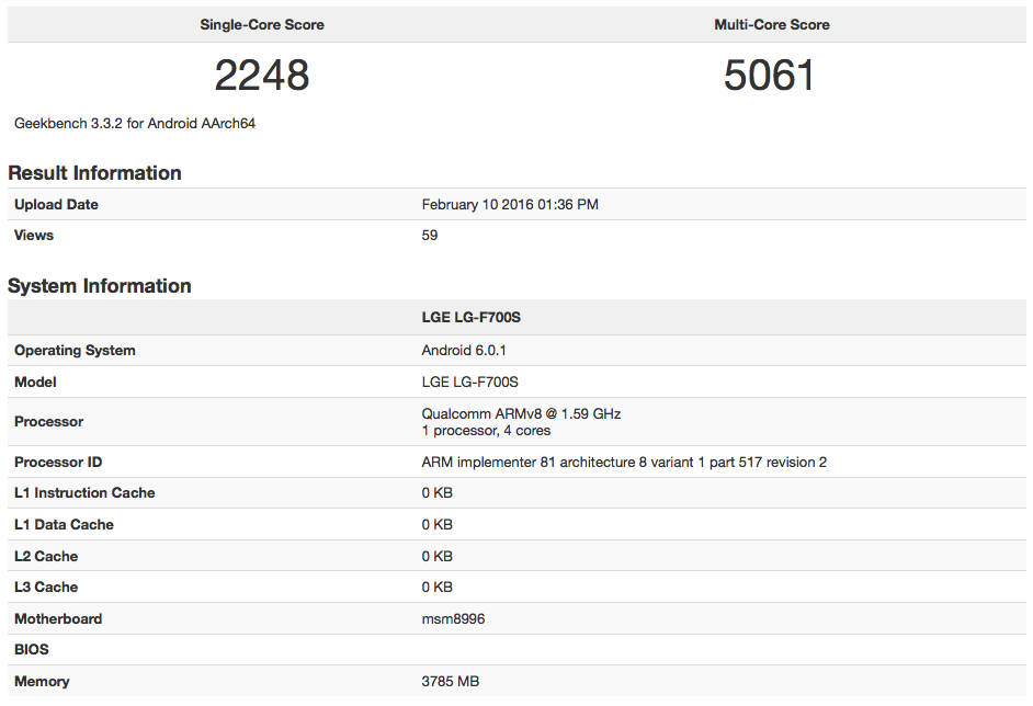 O LG G5 foi avistado na base de dados do GeeksBench e agora temos uma imagem muito mais clara do que virá integrado no próximo topo de gama da LG. Confirmou-se agora a presença do processador Qualcomm Snapdragon 820 que será suportado por 4GB de memória RAM.