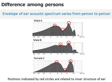 O altifalante de um auricular é usado para gerar sinais acústicos durante algumas centenas de milissegundos. Um microfone embutido no mesmo auricular capta os sinais transmitidos dentro do ouvido. Durante este processo, um método de adição síncrona, que soma e calcula a média das formas de onda dos múltiplos sinais recebidos, é usado para eliminar o ruído dos sinais recebidos. Em seguida, calcula como o som ressoa dentro do ouvido (acústica). Estes passos são efetuados em menos de um segundo, permitindo medir de forma rápida e estável as características acústicas únicas de cada indivíduo.