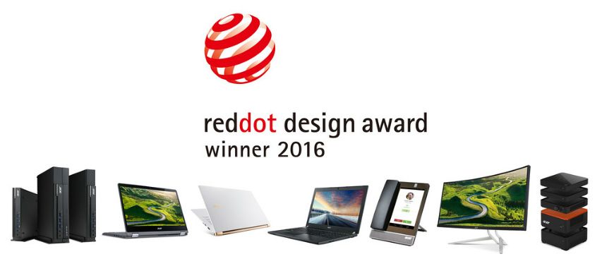 Sete produtos da Acer foram distinguidos com prémios Red Dot: Product Design 2016, incluindo o notebook ultrafino Aspire S 13, o notebook conversível com versatilidade 360 Aspire R 15, os notebooks de nível profissional TravelMate P6, o míni PC modular Revo Build, os desktops compactos de nível profissional Veriton N, o monitor curvo para jogos XR342CK, e o desk phone com ecrã tátil abTouchPhone.