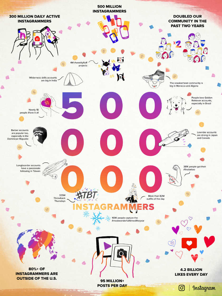 Segundo Amy Cole, head of brand development for EMEA, “é incrível pensar que em apenas cinco anos e meio a comunidade do Instagram cresceu para meio bilião. É entusiasmante ver que estamos a crescer tão rapidamente – a comunidade mais do que duplicou nos últimos dois anos – e agora 300 milhões de pessoas utilizam o Instagram todos os dias.”