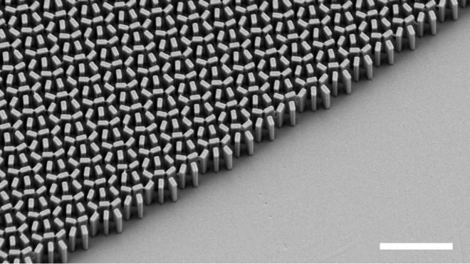Mas cientistas norte-americanos prometem revolucionar o mundo das lentes com as “metalenses”. A lente é bastante diferente dos discos de vidro côncavos que conhecemos das câmaras e microscópios. Em vez disso, é feito de uma fina camada de quartzo transparente revestido por milhões de pequenas colunas de dióxido de titânio, cada uma com apenas algumas dezenas de nanometros de diâmetro e centenas de altura. Individualmente, cada um destes nano-colunas reage fortemente à luz, mas é a sua atuação em conjunto que a torna tão revolucionária