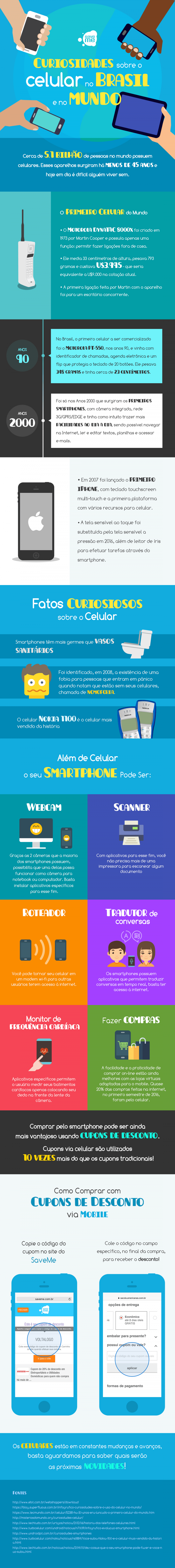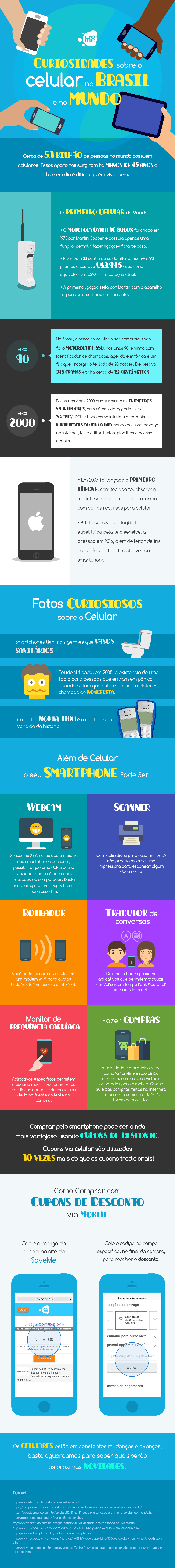 Pensando nesse equipamento cheio de utilidades, o SaveMe (www.saveme.com.br) – portal que reúne as melhores ofertas e descontos de produtos e serviços – preparou um infográfico com informações e curiosidades sobre os celulares. No conteúdo é possível saber fatos interessantes sobre o primeiro aparelho comercializado até os sofisticados smartphones a que temos acesso hoje em dia, além de dicas para aproveitar ainda melhor o celular!