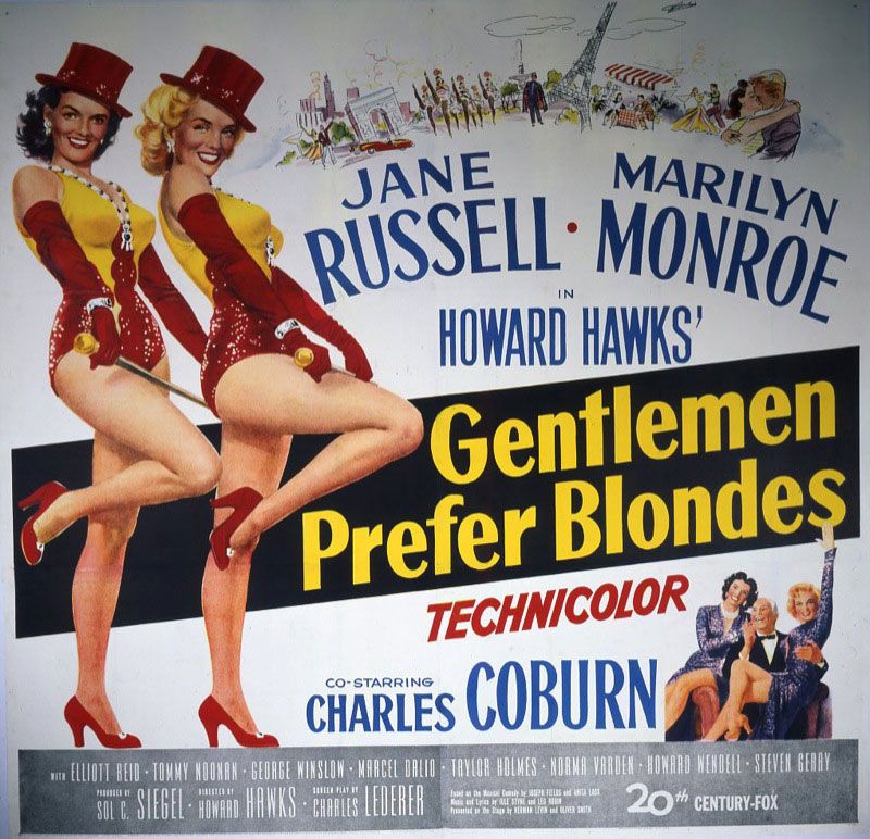 Talvez a resposta sejam duas: Marilyn Monroe, o protótipo da loira desmiolada (aparentemente desmiolada, diga-se: para o final do filme, ela confessa que “consegue ser esperta, mas a maioria dos homens não o quer”, em mais uma daquelas farpas bem direcionadas aos usos e costumes da América de então) a quem apenas o dinheiro importa e Jane Russel, a morena que lhe serve de perfeito contraponto, toda ela desenvoltura e ironia, língua aguçada sempre pronta a cortar a direito com algumas das melhores falas do filme.