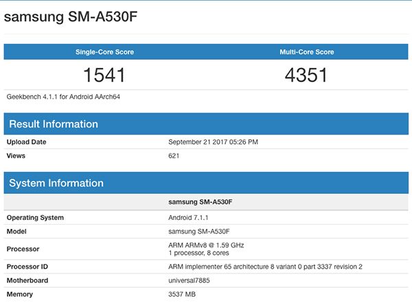 De acordo com a listagem que apareceu no site de testes de performance, Geekbench, o novo Samsung Galaxy A5 (2018) irá chegar aos mercados com um novo processador Exynos 7885, que ainda não foi apresentado oficialmente.