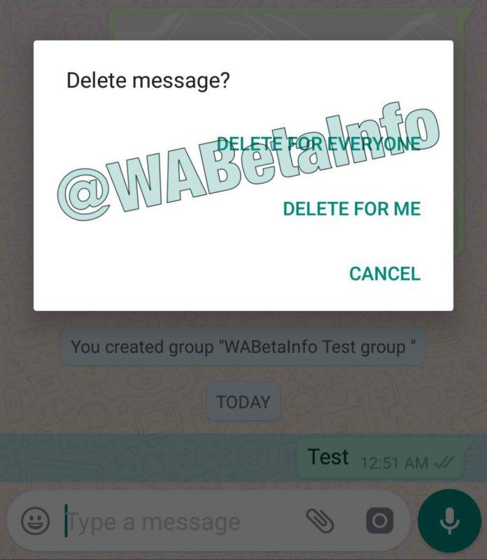 Para apagar as mensagens, o processo mantém-se o mesmo. Um longo pressionar na mensagem adicionada irá permitir a sua selecção e depois irás passar a ver a opção de “apagar para todos”.