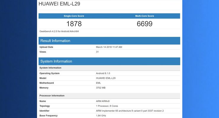 Um novo smartphone da Huawei surgiu na lista de testes de performance da plataforma Geekbench com especificações bastante interessantes. Com o código EML-L29, tudo leva a acreditar que este se trata do novo Huawei P20.