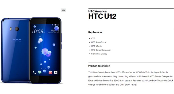 O HTC U12 fez uma nova aparição no site da Verizon, onde foram reveladas algumas das suas funcionalidades principais, juntamente com algumas das suas especificações. Apesar da listagem referir o novo HTC U12, a imagem apresentada continua a ser do topo de gama do ano passado, U11.