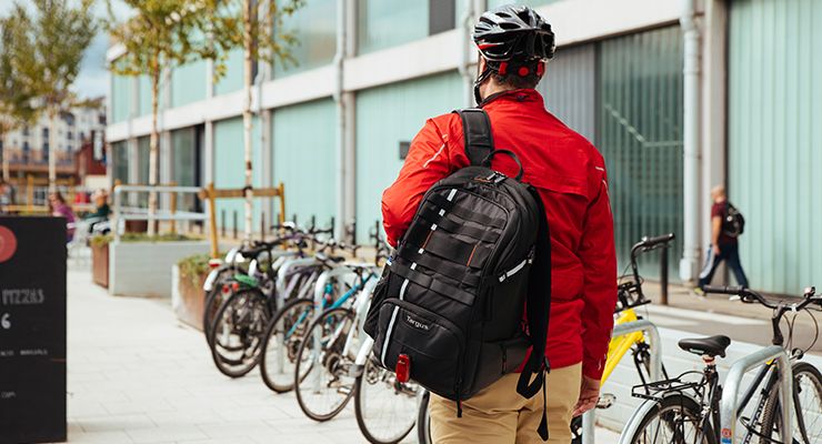 A mochila Targus Work + Play Cycling é a solução ideal para quem vai de bicicleta para o trabalho já que incorpora um sistema acolchoado que protege e proporciona conforto nas costas, e também um sistema de malha para os ombros que confere um maior fluxo de ar para trás, bem como uma correta distribuição do peso nas costas. Na zona frontal estão colocadas cintas específicas para prender o capacete.