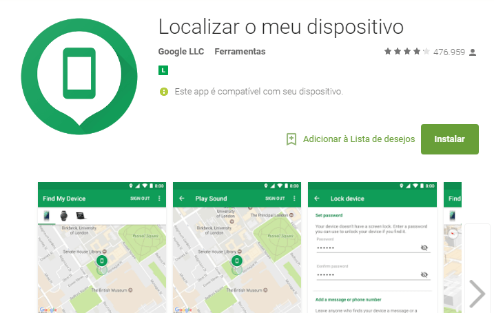 O aplicativo foi criado especialmente para localizar seu dispositivo caso ele tenha sido roubado ou esteja perdido.