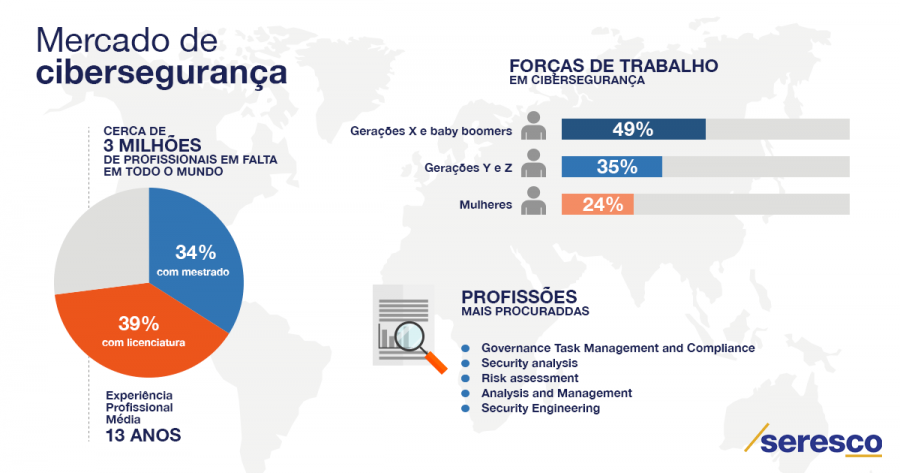 De acordo com dados divulgados pela Seresco, membro fundador da PSA (Payroll Services Alliance), o mercado de cibersegurança global, carece de três milhões de profissionais em todo o mundo. de acordo com dados da PSA também os perfis destes profissionais incluem formação superior e licenciatura, e vasta experiência profissional, acima de uma década.