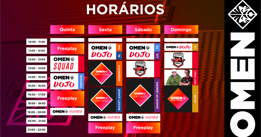 - OMEN DOJO – Aulas dadas por profissionais e streamers aos visitantes, em jogos específicos.
