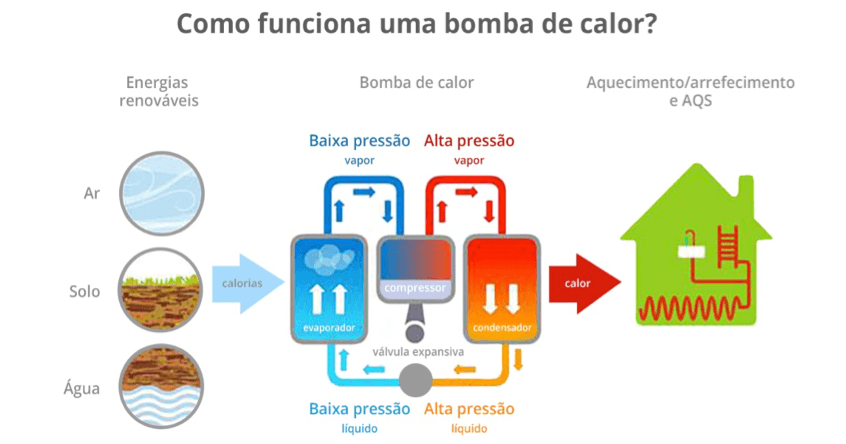 A bomba de calor consome apenas a eletricidade necessária para operar o compressor e os seus acessórios. É por isso que os seus requisitos são 3 a 4 vezes menores que a energia que recupera.
