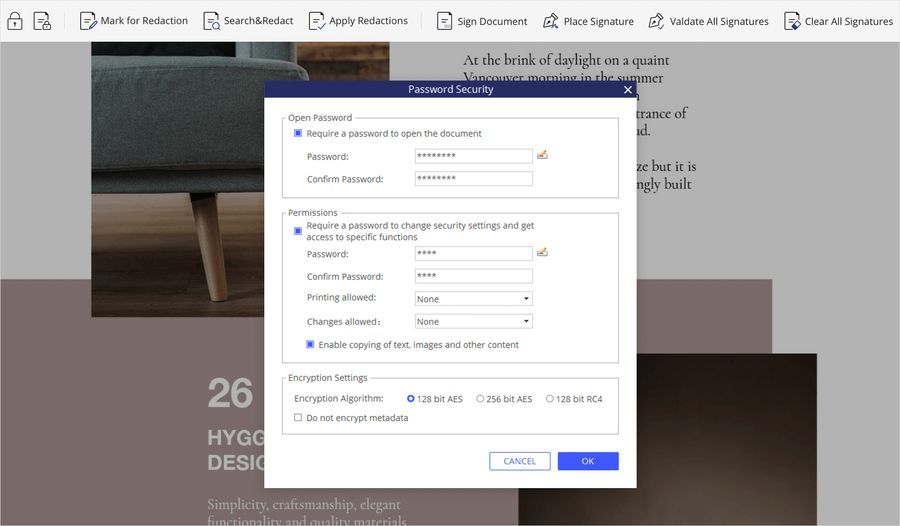 Além da presença da senha, em alguns programas de edição PDF é possível configurar restrições de impressão, proibição de cópia ou proteção contra alteração. Dessa forma, você tem a certeza de que um arquivo não passará por mudanças ao ser visualizado por outras pessoas.