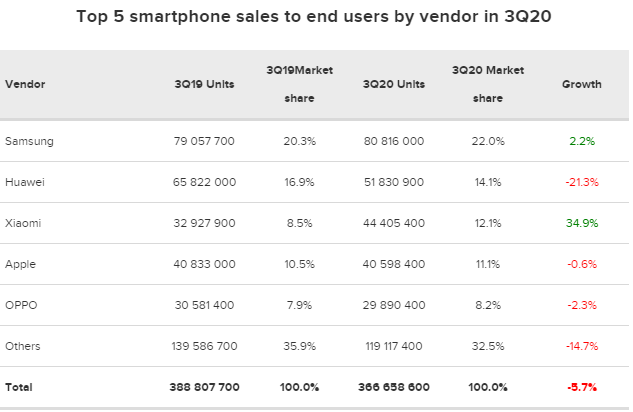 Caso estas tendências se mantenham até ao final do ano, é muito provável que a Xiaomi consiga saltar para a segunda posição ainda antes do final de 2020.