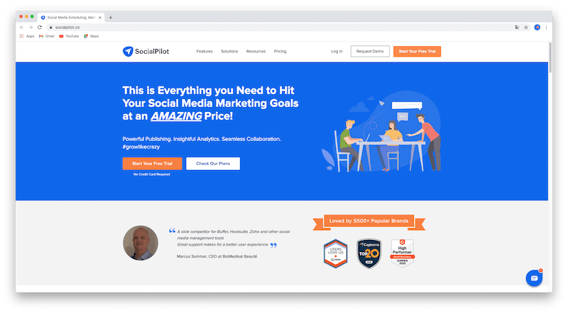 Escolhida por equipas e agências de marketing digital no mundo todo, SocialPilot é uma das melhores ferramentas para gestão de redes sociais que vem para facilitar as tarefas diárias desenvolvidas nas várias plataformas e aumentar o engagement na comunidade de forma eficaz.
