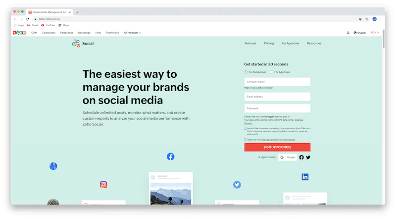 A ferramenta Zoho Social oferece grande suporte para o crescimento de qualquer negócio e, até mesmo, de agências de marketing digital, potencializando a presença das marcas nas redes sociais. A ferramenta apresenta uma lista de funções coesa que permite acompanhar o desempenho dos seus canais sociais com muita facilidade.
